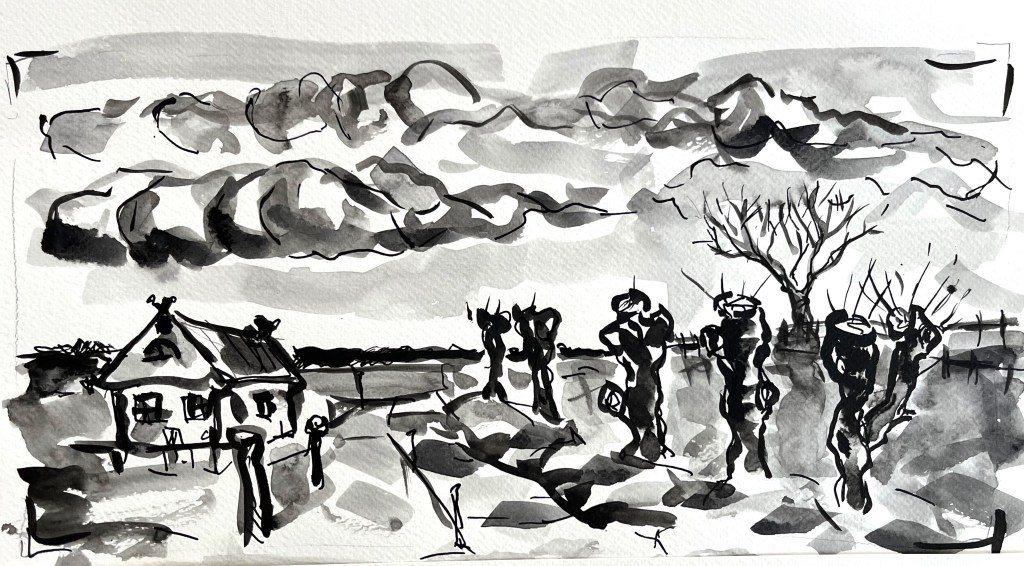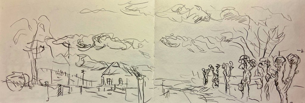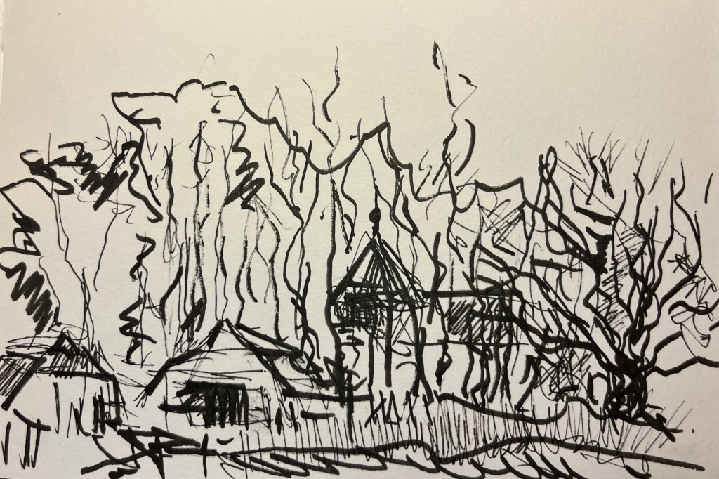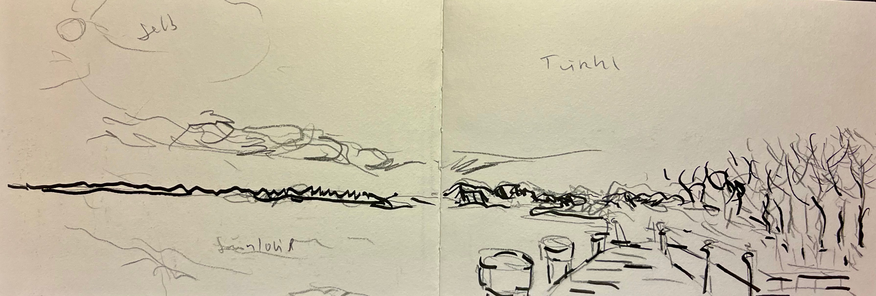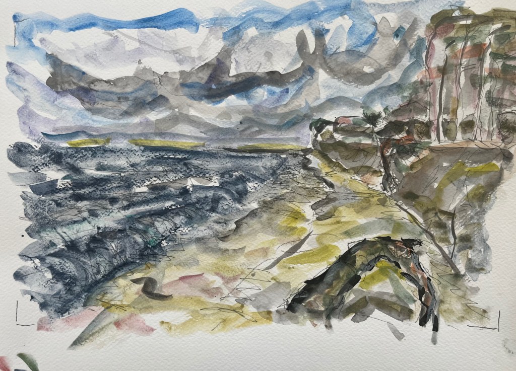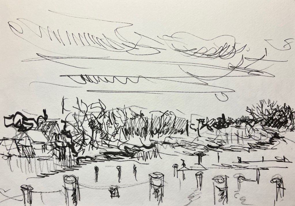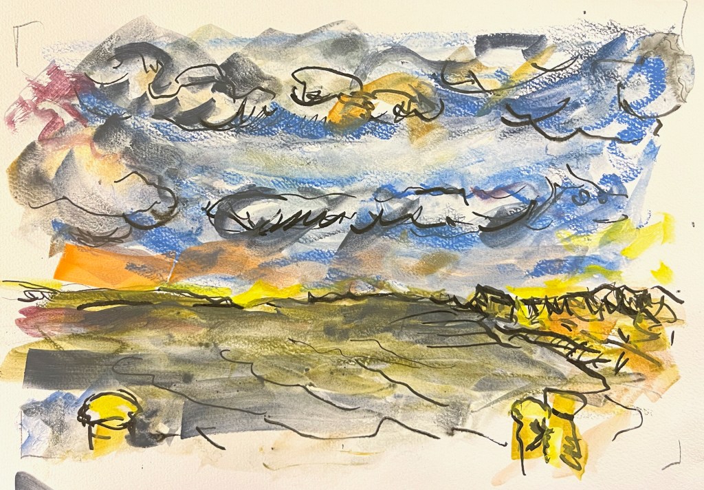 Das Fischland / Darß ist seit meiner Kindheit ein emotionaler Ankerpunkt in meinem Leben. Endlose Sommer (auch mit endlosen Regenfällen, Sommer zwischen FKK und Gummistiefeln), Familienurlaube mit Trabi und Anhänger in den gefühlt ein zweiter Hausstand , nebst Familienzelt auf die Halbinsel gebracht wurden. Schon als Jugendlicher habe ich das Fischland immer wieder gezeichnet und gemalt. Die Alleen, die langen Feldwege, den Bodden, die Strände und Urwälder …. So war dieses Plenair auch eine Rückkehr und Grund genug der Halbinsel in einer von Touristen eher freien Zeit einen Besuch mit Skizzenbuch, Stift und Farbe abzustatten. Kalt war es …