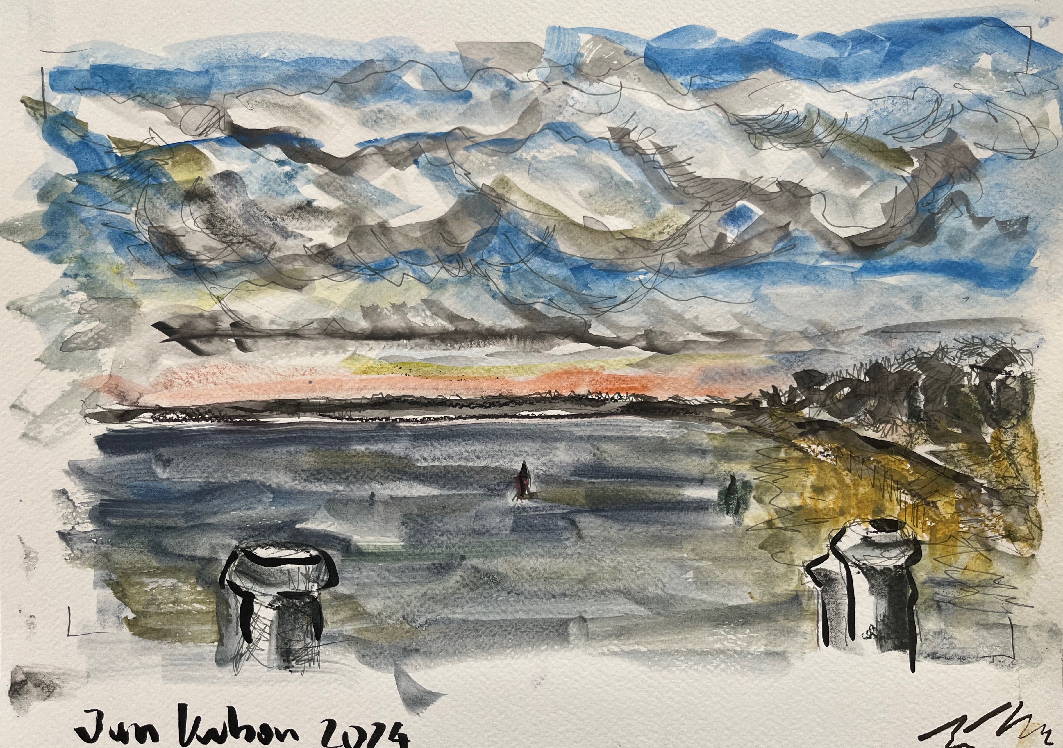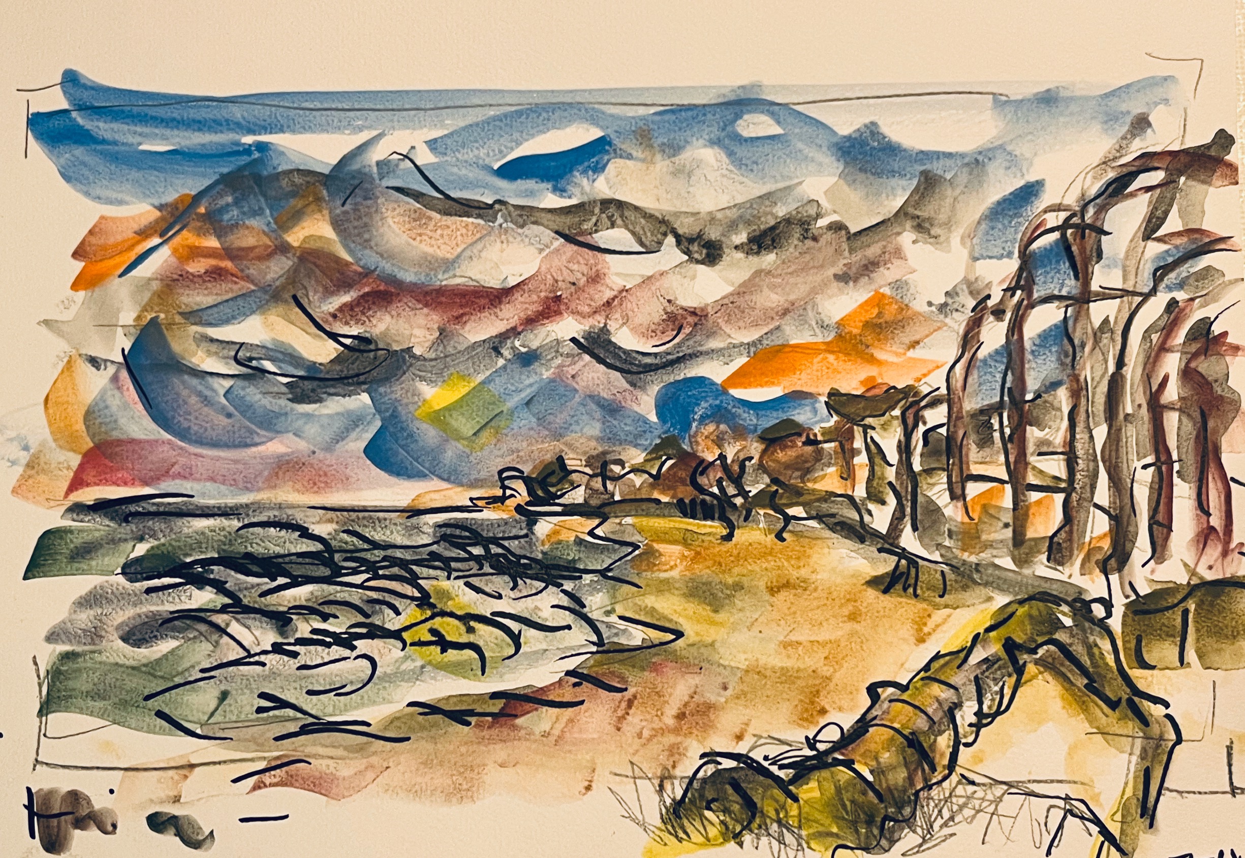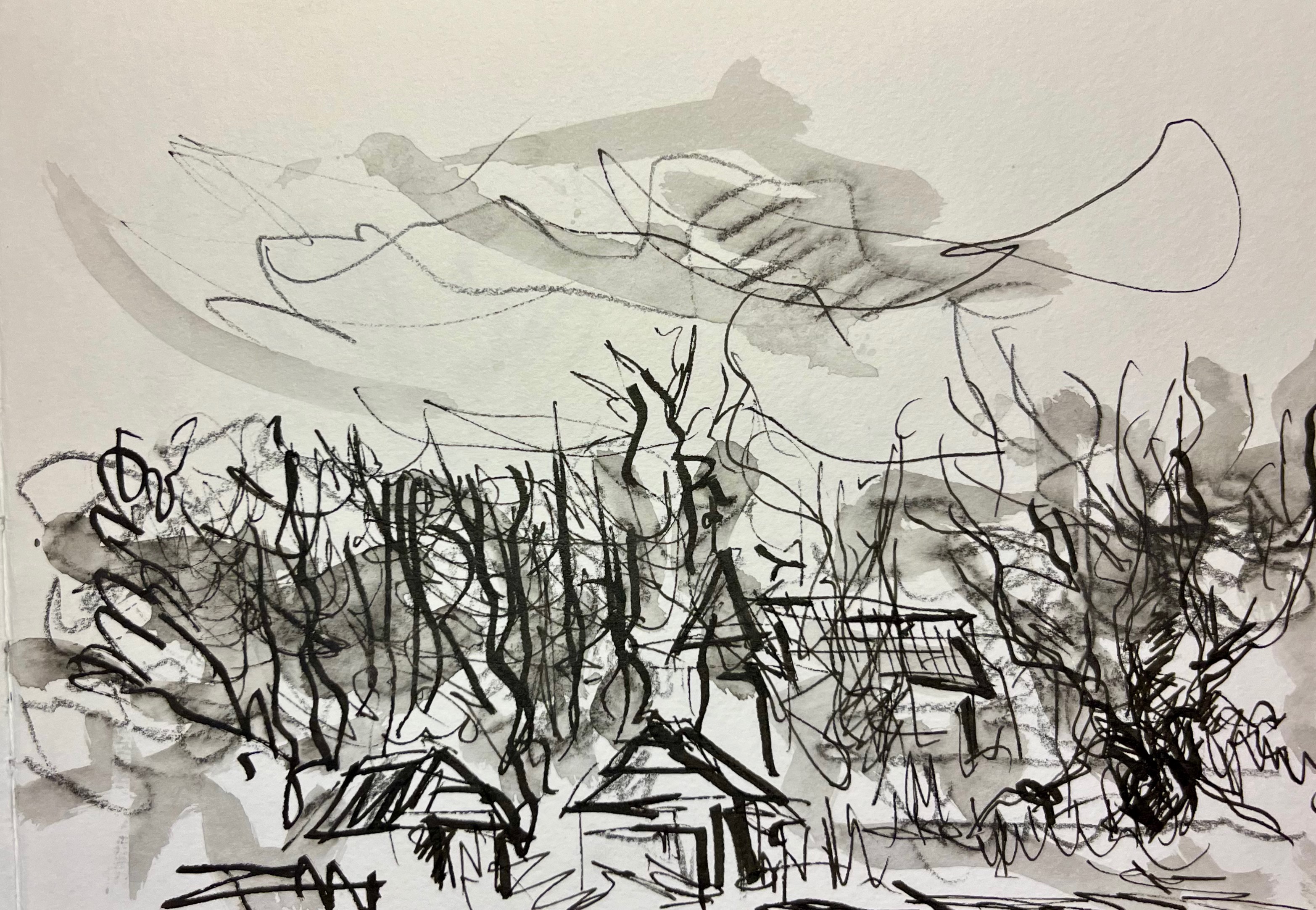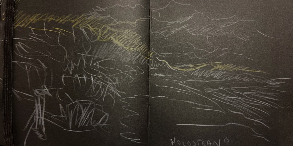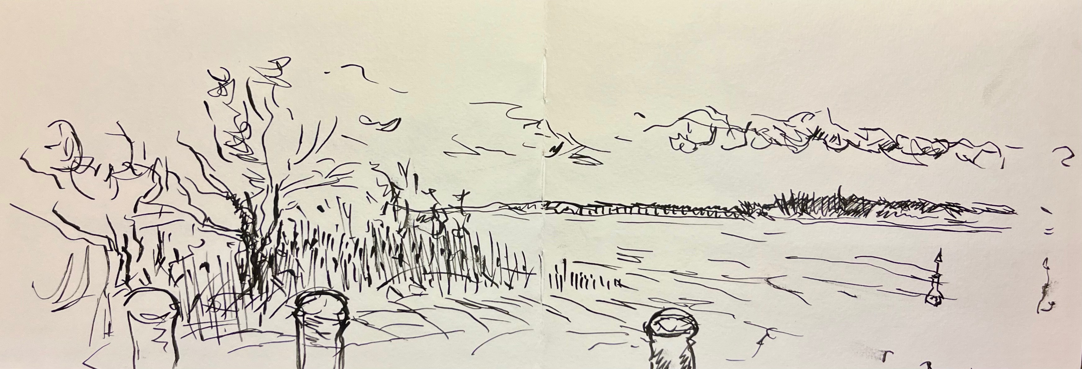 Das Fischland / Darß ist seit meiner Kindheit ein emotionaler Ankerpunkt in meinem Leben. Endlose Sommer (auch mit endlosen Regenfällen, Sommer zwischen FKK und Gummistiefeln), Familienurlaube mit Trabi und Anhänger in den gefühlt ein zweiter Hausstand , nebst Familienzelt auf die Halbinsel gebracht wurden. Schon als Jugendlicher habe ich das Fischland immer wieder gezeichnet und gemalt. Die Alleen, die langen Feldwege, den Bodden, die Strände und Urwälder …. So war dieses Plenair auch eine Rückkehr und Grund genug der Halbinsel in einer von Touristen eher freien Zeit einen Besuch mit Skizzenbuch, Stift und Farbe abzustatten. Kalt war es …